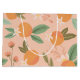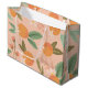 Dê presentes em estilo com esta bolsa de presentes, apresentando um padrão ilustrado colorido de laranjas, flores tropicais e folhas sobre o fundo da rosa claro.