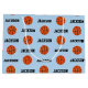 Bolsa de presente azul personalizada padrão de basquete para o seu fã desportivo! Esta bolsa única de papel de basquete apresenta bolas laranja de basquete e fonte esportiva. Você pode alterar a cor do plano de fundo e o estilo da fonte. Perfeito para uma festa de aniversário temática desportiva!