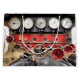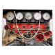 Os maquinistas de comboios a vapor veem a partir da placa de apoio dos manômetros e comandos do comboio.