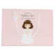 Communion Dove Brunette Girl Esta linda e doce design de primeira comunhão de uma menina morena segurando seu primeiro rosário está em um fundo cor-de-rosa com uma pomba branca pacífica. Tome as memórias excelentes da primeira comunhão sagrada do seu filho com este belo design. Confira os acessórios da Primeira Sagrada Comunhão, papelaria e presentes de comunhão.