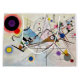 Wassily Wassilyevich Kandinsky (16 de dezembro de 1866 - 13 de dezembro de 1944) era pintor russo e teórico da arte. Kandinsky é geralmente creditado como o pioneiro da abstrato art. Nascer em Moscou, Kandinsky passou sua infância em Odessa (hoje Ucrânia), onde se formou na escola de Arte Grekov Odessa. Inscreveu-se na Universidade de Moscou, estudando Direito e Economia. Bem-sucedido em sua profissão — foi-lhe oferecida uma cátedra (cátedra de Direito Romano) na Universidade de Dorpat (hoje Tartu, Estônia) — Kandinsky começou a pintar estudos (desenho de vida, esboço e anatomia) aos 30 anos. Em 1896, Kandinsky instalou-se em Munique, estudando primeiro na escola particular de Anton Ažbe e depois na Academia de Belas Artes. Voltou a Moscou em 1914, após o início da Primeira Guerra Mundial. Após a Revolução Russa, Kandinsky "tornou-se um internauta na administração cultural de Anatoly Lunacharsky" e ajudou a estabelecer o Museu da Cultura da Pintura. No entanto, nessa altura, "a sua perspectiva espiritual... era estranha ao materialismo argumentativo da sociedade soviética",[4] e às oportunidades criadas na Alemanha, às quais regressou em 1920. Lá ele lecionou na escola de arte e arquitetura Bauhaus de 1922 até que os nazistas a fecharam em 1933. Depois mudou-se para a França, onde viveu o resto da vida, tornando-se cidadão francês em 1939 e produzindo parte de sua arte mais proeminente. Morreu em Neuilly-sur-Seine em 1944. Citação: Wikipedia