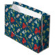 Um Grande Saco para Presentes, com um padrão de Emblemas do País de Gales, uma menina de vestido tradicional do País, um dragão vermelho, um monte de alhos-porcos, uma harpa e um monte de narcisos. Você pode mudar facilmente a cor de fundo azul, se desejar.