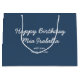 Apresentando a trendy primavera hue: Serious Blue. Elevem seu presente com nossa bolsa de presente de aniversário feliz moderna e na moda, completa com texto personalizável em uma fonte e assinatura bonitinha, manuscritas. Sua design simples, mas elegante, em cores sólidas oferece um apelo eterno, perfeito para aniversários, graduações, Páscoas, chás e muito mais. Explore nossas cores de tendência de primavera versáteis para coordenar produtos ou descobrir outras matizes de na moda para corresponder ao seu decoro.