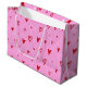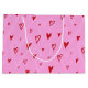 Sacola Para Presentes Grande Corações vermelhos bonitos em fundo rosa