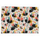 Uma Grande Bolsa de Presente Projetada em Cores Retrô de Preto, Azul Turquesa, Dourado e Laranja com um Design de Folha Floral