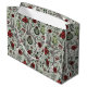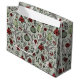 Este elegante saco-presente desenhado à mão no país ocidental apresenta crânios de renas enfeitados em rosas vermelhos e creme com flores festivas de poinsettia, cactos, sagrados e vermelhos de inverno, todos contra um elegante pano de fundo verde. Ideal para a época de férias ou para o casamento de Natal do país.