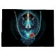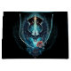 Crânio impressionante e realista, exuando uma aura mística. Par majestoso de asas grandes e semelhantes a penas em tons azuis e negros profundos que dão ao design um movimento dinâmico.Globalmente, esta design combina elementos de escuridão e luz, vida e morte, e força e fragilidade. Conta uma história de transformação e liberdade enquanto captura a beleza do desconhecido.