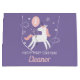 Para a garotinha que está comemorando seu aniversário. Saco de presente branco, roxo e rosa, que pode ser personalizado para incluir o nome e a idade de aniversário do pequenino. Mantenha a idade de aniversário no balão como está ou edite. Mantenha o texto design de 'FELIZ ANIVERSÁRIO' como está ou edita. Inclua o nome da aniversariante na parte inferior da design. Todo o texto e as edições aparecerão na parte frontal e traseira. Os Unicórnios são um tema de aniversário tão popular porque são tão fofos e eternos. A melhor parte é que o saco de presentes pode ser personalizado!