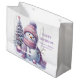 Sacola Para Presentes Grande Cute Pink Snowman Winter Birthday
