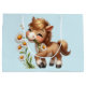 Saco de presentes com uma ilustração adorável. Um pequeno pônei marrom comendo margaridas felizes.