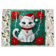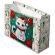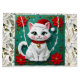 Sacola Para Presentes Grande Cute White Cat and Poinsettia Christmas