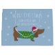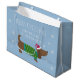 Sacola Para Presentes Grande Daschund e Snowflakes Blue Cartoon