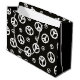 Grande sacola de presente brilhante com uma imagem, na frente e atrás, de sinais brancos de paz a preto. Ver os sacos de presentes de vinho e meio correspondente, o convite e o papel de embalagem. Veja toda a coleção Psychedelic 60s Gift Bag nos TOUCHES ESPECIAIS | Seção Favoritos para festas.
