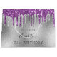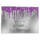 Um saco de presente para um aniversário de 21 ruas (ou qualquer idade) feminino e glamouroso. Um fundo com aparência de prata suja com púrpura e cintilação de prata falsa, aparência de pingar tinta. Personalize e adicione uma data, nome e idade 21. O texto: O nome é escrito em preto com um moderno script de estilo escrito à mão.