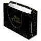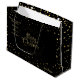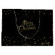 Saco de presente de Natal alegre com votos de Natal, Personalizado. Saco de presente de Natal e Ano Novo de inverno para pais e filhos, amigos. Saco de presente de NATAL decorado com símbolos mágicos de Natal, confetes dourados brilhantes, flocos de neve dourados e mais detalhes festivos padrão de luxo de Natal dourado. Monograma. Design gráfico de luxo original e moderno. Personalize-os adicionando nome ou texto de votos. Decoração de design em dois lados.