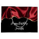 Um saco de presentes com um design falso de satin. Vermelho escuro com dobras e borda brilhante dourada.