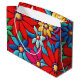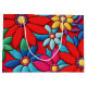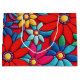 Padrão floral de margarida abstrato bordado em cores vermelha, amarela, azul e verde.