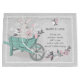 Coelhinho de Páscoa num carrinho de flores. Flower wreath em uma cinza com desejos de Páscoa. Os tons são pastel, cinza, verde e rosa