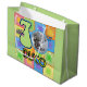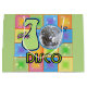 Saco de presente brilhante de limão grande com imagem, na frente, de uma esfera brilhante de Disco, grampeadora dos anos 70, sobre um fundo colorido de praça, laranja, azul, verde, roxo e amarelo. Ver o convite correspondente, envelope, saco de favores, caixa de favoritos, etiqueta de favor, etiqueta, etiqueta, adesivo quadrado e papel de embalagem. Veja toda a coleção Disco 70s Gift Bag nos TOUCHES ESPECIAIS | Seção Favoritos para festas.