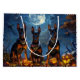 Libere o espírito assustador com esta design sombria do Dia das Bruxas apresentando um bando de cachorros sob um céu escuro e iluminado, cercado por morcegos voadores e abóboras brilhantes. Perfeito para aqueles que amam um toque de diversão terrível com seus amigos peludos!