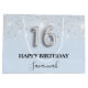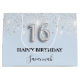 Elegante, clássico, glamouroso e feminino para uma doce 16, 16 festa de aniversário. Um bebê azul-tenente, fundo azul-claro. Decorado com pó falso de cinza prateada. Personalize e adicione um nome. Com o texto: Parabéns. O nome é escrito com um moderno estilo escrito à mão. O número 16 é escrito com uma fonte no estilo do balão.