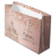 Uma bolsa de presente para uma menina e glamourosa Doce 16, 16 anos. Um fundo metálico de aspecto rosa dourado falso decorado com poeira falsa brilhante. Personalize e adicione uma data e um nome. O nome é escrito com um moderno estilo escrito à mão