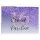 Um brilho roxo elegante caindo do lado de um fundo de gradiente roxo. No meio, há um número 16 de brilho exclusivo que corresponde ao estilo do saco-presente. Entre em contato comigo se precisar de ajuda com o design, adicione algo ou altere/remova o número ou qualquer outra coisa.