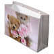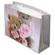 Sacola Para Presentes Grande Dois ursos peludos segurando rosas
