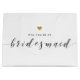 Saco de presente "Will You Be My Bridesmaid", projetado por costume, para presentes de propostas de damas de honra que incluem caligrafia moderna e design de coração de ouro.