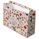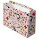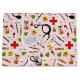 Saco de presente temático médico criativo com suprimentos de saúde em um fundo rosa.