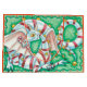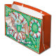 Esta bolsa de presente Holiday apresenta uma deliciosa imagem vintage de um dragão de Natal listrado vermelho e branco. O dragão veste os sinos de dourado, e carregar uma bengala de doces listrados na boca. A imagem é colocada sobre um fundo verde com borda decorativa e emoldurada em vermelho. Ambos os lados da bolsa têm a mesma imagem. Bonita e única!
