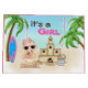Essa bolsa de presente de bebê de praia "é uma garota" bonita mostra um bebê de praia bebendo seu limão. Ela está de pé com seu impressionante castelo de areia e prato cercado por palmeiras tropicais. É perfeito para chás de fraldas e bebês novos. Alguns gráficos em artwork©delightful-doodles.com e CherylSeslarDesigns.com em DigiWebStudio.com. ^