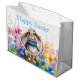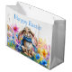 Sacola Para Presentes Grande Easter Bunny blue scarf Happy Easter