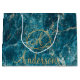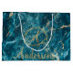 Elegante Azul Dourado Efeito Marble Monograma Natal Grande Saco de Presente. Esta bolsa elegante tem um fundo de efeito de mármore azul e dourado elegante com espaço para adicionar monograma e nome da família/empresa. Personalize-o alterando o nome e o monograma. Para mais personalizações, contacte-me em mypaperlove2021@gmail.com