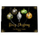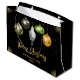 Add a bold twist to your holiday gifting with this personalized Christmas gift bag featuring a striking black background and five hanging ornaments in gold, green, white, and black. Each ornament showcases a mix of classic and safari-inspired patterns - including zebra stripes, leopard spots, and abstract geometrics - bringing a touch of wild elegance to your festive wrapping.