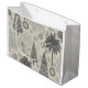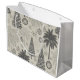 Give your gifts a unique and stylish presentation with this Monochromatic Christmas Tree and Palm Pattern Gift Bag. This unique design blends the traditional holiday feel of pine trees and snowflakes with a tropical touch of palm trees, all rendered in a chic neutral and gray color palette. Perfect for anyone who loves a modern, non-traditional holiday aesthetic or those celebrating the season in warmer climates. The large, durable bag is great for a variety of gifts.