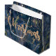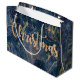 Elegante Elegante Dourado Efeito Marble Feliz Natal Grande Saco de Presente. Esta elegante bolsa de presente tem um fundo elegante de efeito mármore azul e dourado com o Feliz Natal escrito em bonito fonte no estilo da tipografia com estrelas douradas. Para qualquer personalização, entre em contato comigo em mypaperlove2021@gmail.com