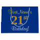 Sacola Para Presentes Grande Elegante, Azul, Faux Dourada aniversário de 21 ano