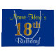 Sacola Para Presentes Grande Elegante, Azul, Faux Dourado 18º Aniversário + Nom