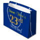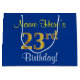 Sacola Para Presentes Grande Elegante, Azul, Faux Dourado 23º Aniversário + Nom