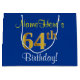 Sacola Para Presentes Grande Elegante, Azul, Faux Dourado 64º Aniversário + Nom