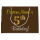 Este simples e elegante design de presente de aniversário apresenta uma mensagem personalizada, como "CustomName’s 5 Birthday!" (com o "5" a ter uma aparência falsa/imitada de cor dourada) sobre um fundo castanho. O nome está em texto amarelo, parecido com script, e pode ser personalizado. Uma bolsa de presente de aniversário personalizada como esta poderia talvez ser usada quando se dá um presente ou presente a alguém que comemora seu quinto aniversário. [~Z0000262]