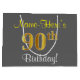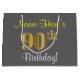 Sacola Para Presentes Grande Elegante, Cinza, Faux Dourada 90 Aniversário + Nom
