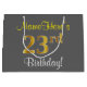 Sacola Para Presentes Grande Elegante, Cinza, Faux Dourado 23º Aniversário + No