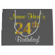 Sacola Para Presentes Grande Elegante, Cinza, Faux Dourado 24.o Aniversário + N