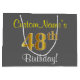 Sacola Para Presentes Grande Elegante, Cinza, Faux Dourado 48º Aniversário + No