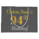 Sacola Para Presentes Grande Elegante, Cinza, Faux Dourado 94.o Aniversário + N