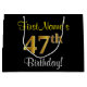 Sacola Para Presentes Grande Elegante, Preto, Faux Dourado 47º Aniversário + No