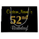 Sacola Para Presentes Grande Elegante, Preto, Faux Dourado 52º Aniversário + No