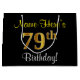 Sacola Para Presentes Grande Elegante, Preto, Faux Dourado 79º Aniversário + No